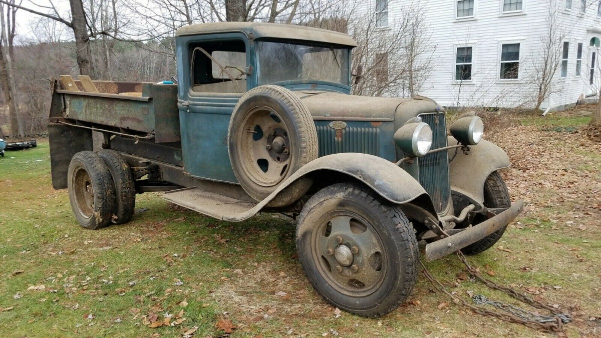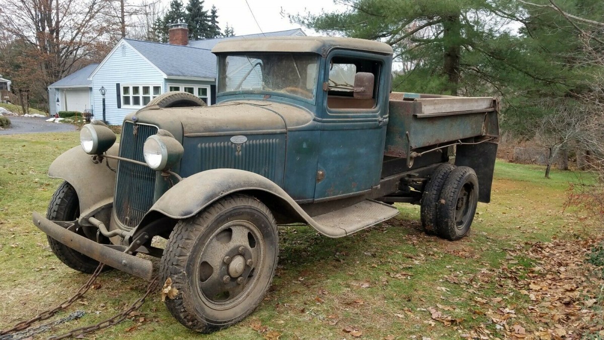 No, not “green” as in eco-friendly… “green” as in painted green. This decent-condition 1934 Ford model BB dump truck has just been pulled from a barn after languishing for the last 10 years and is listed for sale here on eBay out of Kent, Ohio, but found in a barn in Massachusetts.