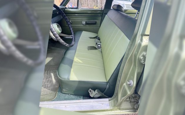 The seats have clearly been recovered, and it would have been nice to have been a bit more factory correct in the color and pattern, but at least they aren’t covered with a blanket. The back seat looks equally nice, and the seller doesn’t really mention the condition at all; they talk about all of the mechanical work that’s been done. It would be nice to see the underside, but I don’t see anything resembling rust at all here.