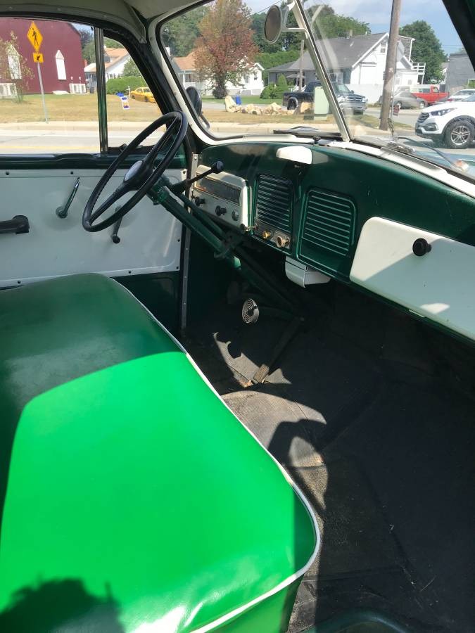The transmission is a column shifted 3 speed. The interior of this truck is basic to say the least, but it gets the job done. If I had to critique anything on this truck it would be the seat, the color choice of the bench seat is a little off, but thats an easy fix if it bothers you. I would probably go with a dark tan saddle color but thats my opinion. Considering the condition and rarity of the truck, along with the spare parts I think this is a good deal, there are many uses for an old truck like this, general weekend hauling, parades, or put a company logo on it and use it for advertisment in front of the shop. What would you do with it?