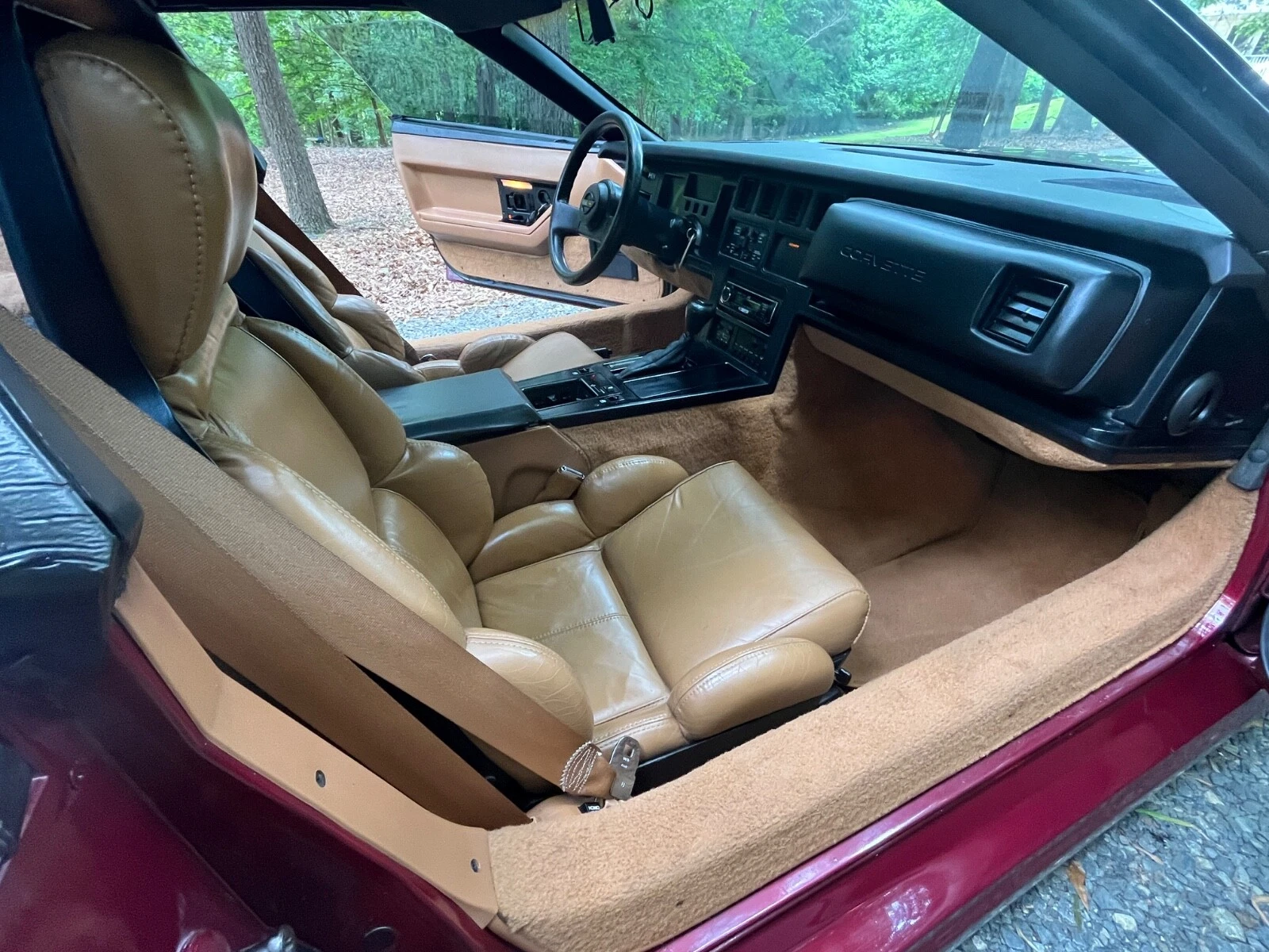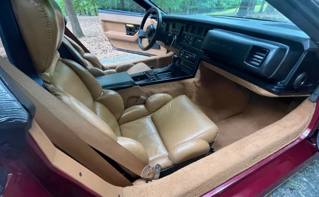 The interior is a treat, too, as I was expecting to see black leather. The camel or tan-tone cockpit may not be particularly wild but it looks great against the dark red paint. The rest of the interior – well, it’s standard-issue GM quality from the 1980s, so it’s average at best. There’s under 70,000 miles on the clock, and in the case of a car like this, that’s not particularly low – you can find plenty of Corvettes from this generation with lower – but what’s more important is how good this car still looks despite having that many miles. The C4 comes with a removable targa top, which apparently wasn’t removed too often given I see no evidence of sun damage.