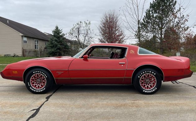 This 1979 Pontiac Firebird Redbird was found by Rocco B here on Craigslist. The car is located in North Ridgeville, Ohio near Cleveland. The seller reports that the Redbird has 53k miles on the odometer but that it has rolled over once so it is actually 153,000 miles. The seller is asking $15,000 which is top of the market for these cars currently. This car is powered with the anemic L37 301 cubic inch V8 engine so it is not going to be flying around. The listing was posted 5 days ago. The Redbird was a cosmetic package that included a red theme with gold pinstripes.