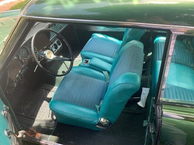 In the past five years, a new aqua-colored interior was fitted, the rear brakes rebuilt, and a new distributor installed. Add to this a new generator, fuel pump and lines, and the car has received a full tune-up. I’m not sure if this dark green color is original or if the paint is a repaint, but it looks okay with some exceptions. The inner trunk lid lip has some rust, some of the chrome is flaking off the rear bumper, and there’s a dent in the driver’s side door. Gives the car character?