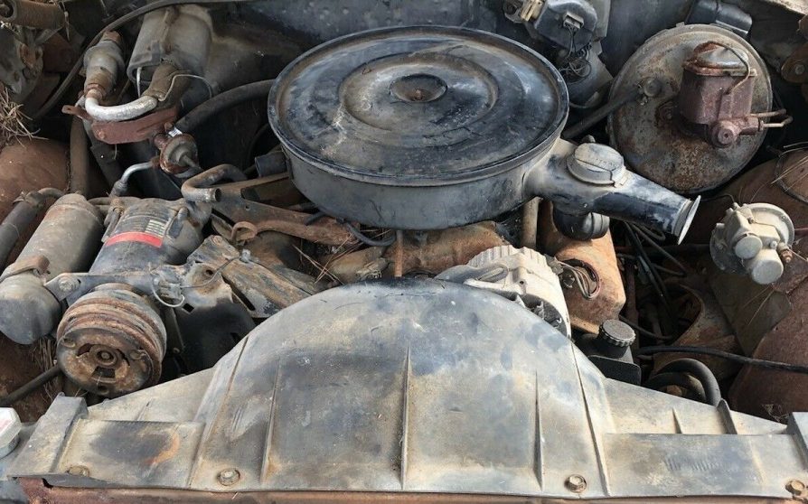 This LeMans is a Texas car and it looks to have spent a lot of time out in the hot, southwestern sun. The finish is burned and faded, typical for many years of outside storage. The seller states that the car has been sitting since 1996 so the guess is that it wasn’t a covered resting place. Interesting to note is the disintegrated nature of the weatherstripping, another long term, outdoor telltale. The passenger-side fender has a bit of a crunch to it and there are the usual nose-nicks that afflict a Pontiac’s proboscis. The seller mentions that the driver’s side quarter has some pinhole perforation as well as rust around the rear window, another common problem with a GM A-body. For a GM intermediate of this era, cars known for attracting rust, this subject appears to be pretty solid. The underside is showing a lot of surface corrosion, however, and a closer inspection is warranted.