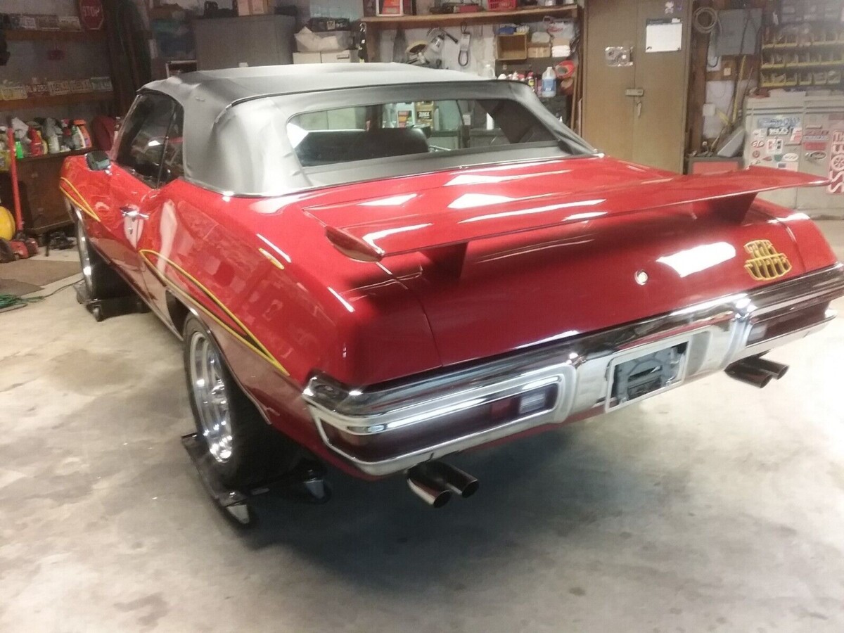 At some point, the idea was to make this LS perform like a GTO and look like a Judge drop-top, which only saw 162 assemblies in 1970. Whatever engine was there before was replaced with a “real” YS GTO motor which should be 400 cubic inches and rated at 350 hp. We’re told it’s seen less than 100 miles and runs and drives great, yet the car is photographed on dollies. A fresh TH-400 automatic transmission was added with a shift kit and stall converter. Out back, you’ll find a 12-bolt rear end with 355 gears.