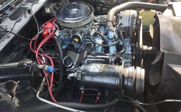 This car is riding on Pontiac 15×7 aluminum snowflake wheels which were an option over the standard Rally II wheels. If the buyer had opted for the WS6 special performance handling package, the car would have 15×8 snowflake wheels, bigger sway bars, tuned shocks and a tighter steering gear box. The seller states that the car drives great. I wonder if it is missing the hood scoop because the original scoop for the 403 cid engine doesn’t fit the Pontiac engine that is installed.