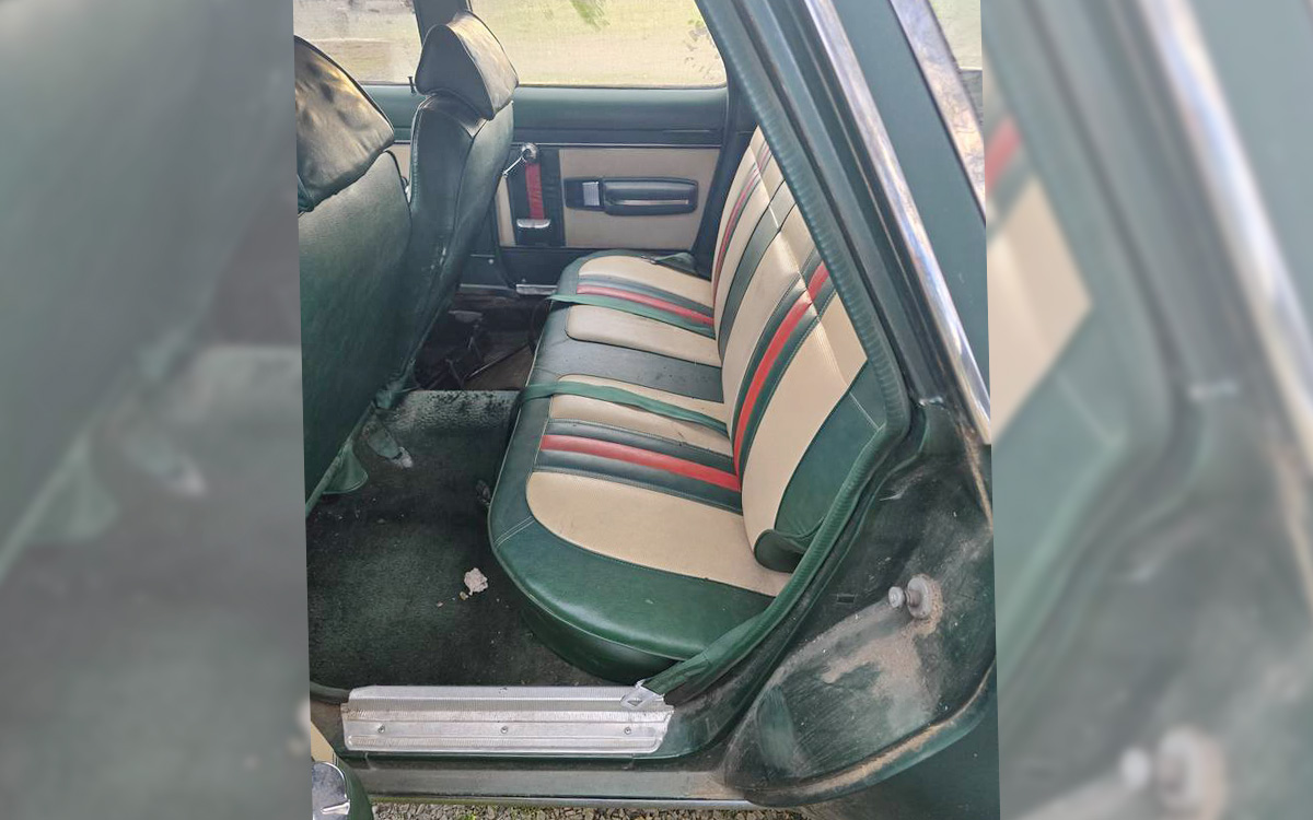 A regular ol’ ’72 Hornet wagon, or Sportabout as they called them, would be a great car on its own, but having the Gucci edition bits and pieces included makes this one a heck of a find. From the outside, you’d never know it was anything special; it’s only wearing a couple of badges. This one doesn’t even have the bold stripe down the side that some of them had. Here’s a general 1972 Hornet brochure, and it mentions the Gucci edition, but there are no photos.