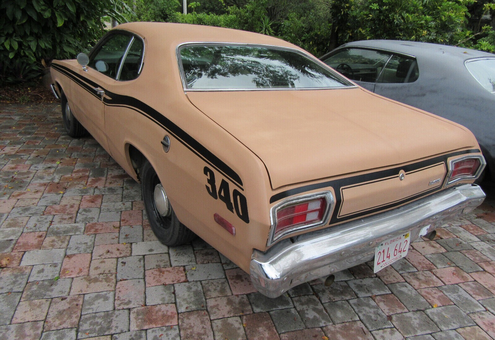 Guy across the highway built a 440 Duster. Had to be ’70-’71. I saw him lay down twin strips of rubber behind those fat tires on the Duster. It looked liked someone had followed him down the street with 14-inch rollers drenched with black paint. He even had custom 440 decals on the back. Cool car.