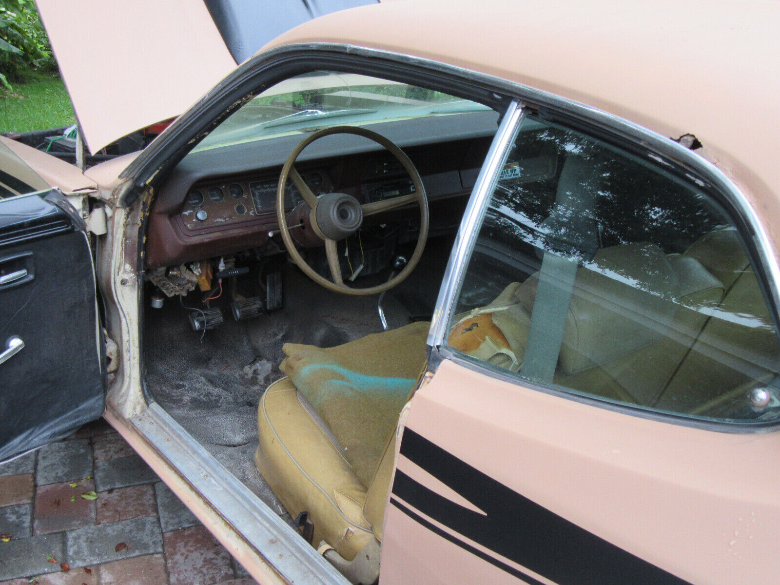 The body is mostly okay but there is damage by the driver’s side pillar at the windshield where the chrome molding was removed. Rust is said to be at a minimum, though the chassis is crusty, but the Gold Duster paint is quite faded after nearly 50 years (if original). The interior may be where the most attention is needed as the seat covers in the front are worn out and the door panels and carpeting look to need attention, too. BTW, if you wanted to turn this into a Duster 340, the seller has a spare engine to sell (along with a 440 if you really wanted to go wild).