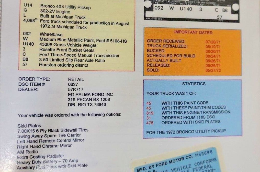 This was already a rough and tumble rig, but the Marti report shows that someone checked all the right boxes for off-roading. It has the Traction-Lok rear axle, extra cooling radiator, and skid plates! The skid plates alone make me want this Bronco for some reason. Unfortunately, the seller doesn’t include any photos of the underside so we can’t get a look.
