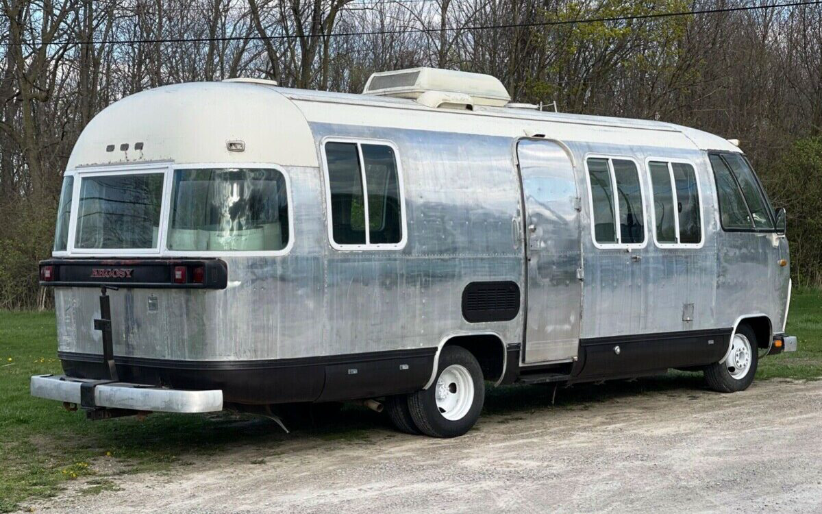 For over 80 years, the reflective aluminum Airstream has made a stylish home away from home, recognized by camping fans and travelers everywhere. This 1975 Airstream Argosy 26 foot motorhome in Fort Wayne, Indiana left the dealership fully painted, and now wears the company’s trademark polished aluminum after a previous owner removed the paint and rubbed out the aircraft-style fuselage. Offered for sale here on eBay, the classic RV had its interior ripped out with dreams of building a mobile hair salon. At least nine bidders have a vision for the empty shell, bidding beyond $6500 so far.