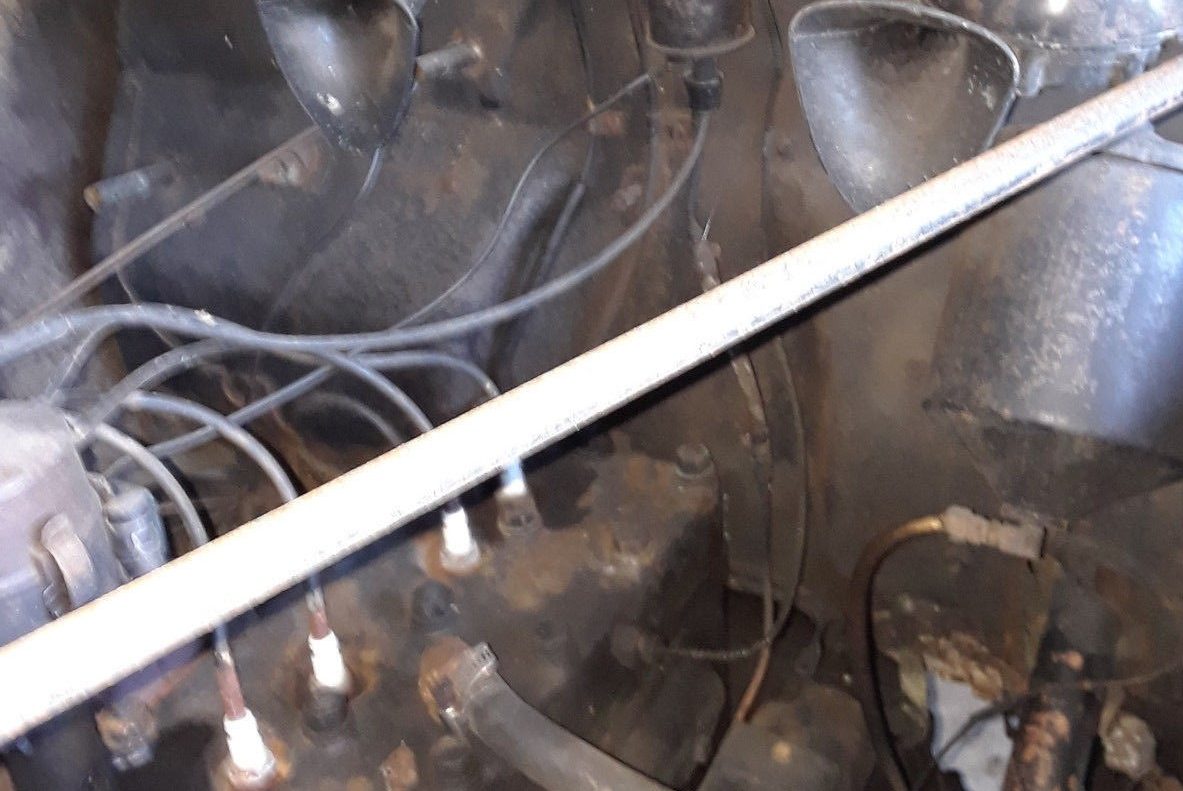 There are two shots of the engine in the ad, and sadly this is the best of them. You can see that wonderful 312.5ci straight-eight. The owner states that it runs well, but that the clutch disc has stuck to the flywheel through lack of use. From that we can deduce that this car has been in storage for a very long time.