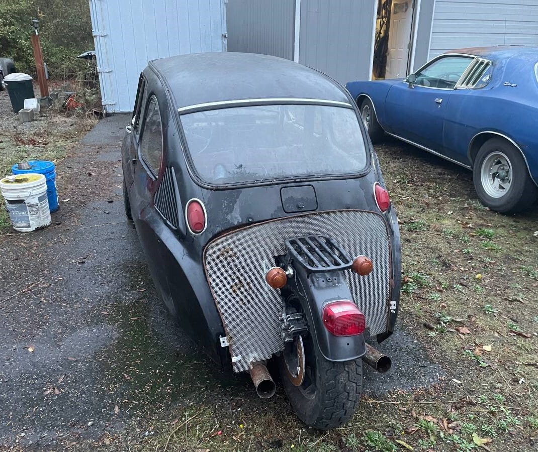 The Subaru 360 was a Japanese microcar that found little success in the U.S. in the 1970s. And at about the same time, Honda’s motorcycle business was taking off in the States. The seller ended up with one of each, so about 15 years ago he/she decided to combine the two into a single vehicle. It’s been mostly in storage since then and needs some work to run again. Located in Yelm, Washington, this one of none is available here on craigslist for $2,500, the best offer, or an interesting trade. And we assume the dog pictured isn’t included. Our thanks to Yargbull for bringing to tip to our attention!