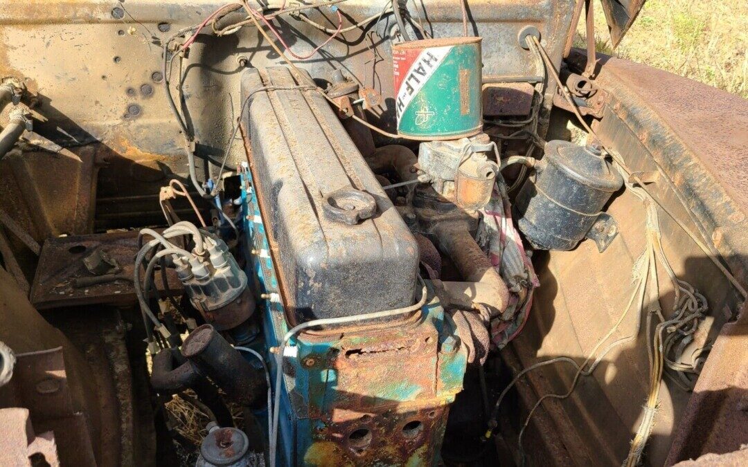 Supposedly parked due to a leaking water pump, it’s a safe bet that the 90 HP, 216 CI, in-line, six-cylinder engine has been a no go for many moons. The leaking water pump is missing and it appears some other stuff has skipped the scene too – it would be nice to know if this prime mover is seized or not. Regardless, an attempt to resurrect this Chevy should include a swap to a powerplant that is more robust and utilizes a fully pressurized lubrication system. I find the blue paint job unusual, looks like someone got loose with a rattle can.