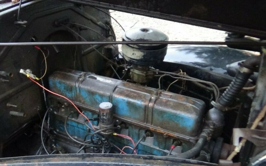 With 111K miles on its odometer, and used for 31 of its 81 years, that averages out to only 3,500 miles per operating year! Cleaned up, this Chevy doesn’t look half-bad. Based on what looks like paint-peel, the primer appears to be showing through in places. There is surface rust present, and maybe a bit more than that with the running boards, but the body seems basically sound. Unfortunately, the lower portion of the driver’s side of the grille has been punched out and the taillights have gone missing. The trunk lid is a head-scratcher, perhaps it’s a replacement lid – its trim is missing and there is body rust around the lower edge of its opening. As for the glass, unfortunately, it is either cloudy or broken and the window gaskets have perished too. There is virtually no detail included in the listing regarding this Chevy’s condition so observing the accompanying images or making inquiries will have to suffice.