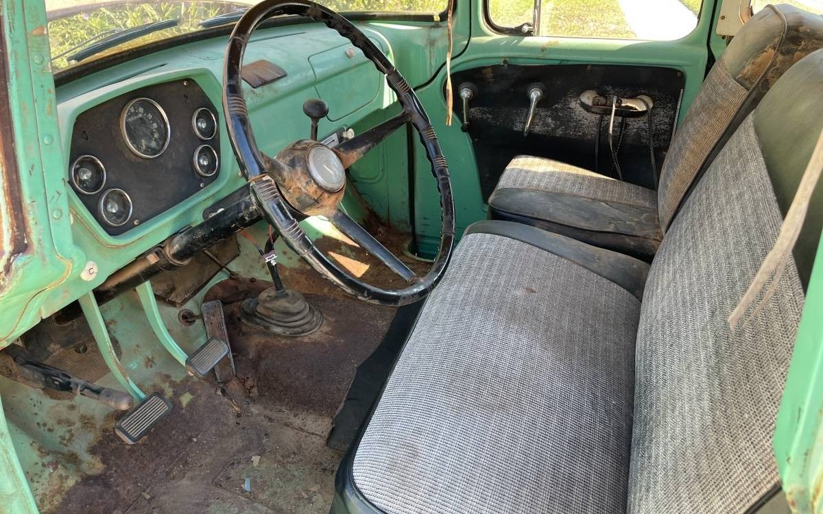 The interior is certainly agrarian in nature, and the hospital sick ward green color doesn’t help, but it could be worse. It should have a back seat and maybe it does but the images aren’t that revealing. The floor illustrates a lot of surface rust and the seller does suggest that both the driver’s and passenger sides will need to be patched. The cargo area is rough but hardly destroyed so rejuvenation shouldn’t be an overwhelming task. Regardless of the next owner’s intentions, whatever direction it goes will likely require a complete interior makeover anyway. Gotta love the simplicity of that instrument panel.