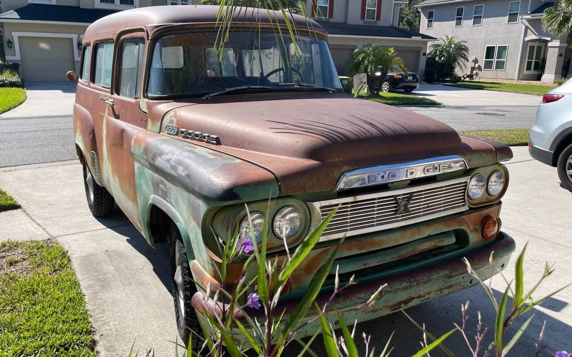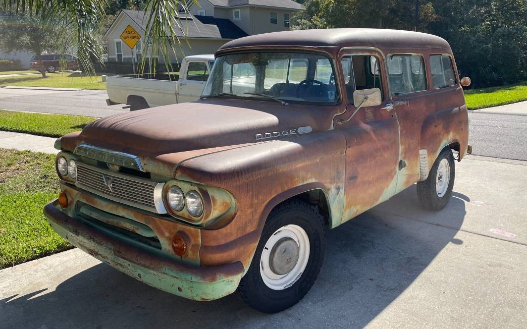 Here’s one you don’t see every day, it’s a 1960 Dodge Town Wagon – sorta like an early SUV, Chevrolet Suburban style. Claimed to have been an Arizona resident, and a government employee, this people/cargo mover has the southwest sunburn (called patina these days) to prove its origins. Having been dormant for years, this Dodge is currently up and running and calls Saint Johns, Florida its home. Interested parties will find it here on craigslist where it’s available for $8,500.