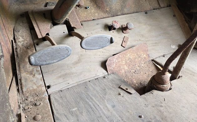 As for the engine, the seller keeps it simple—stating that it turns over by hand. That’s really the extent of what’s shared, so anyone interested would probably want to dig deeper there. The car also reportedly has had some bodywork in the past, with the seller noting previous bondo repairs. It’s currently being stored under a lean-to after previously being kept in a garage.