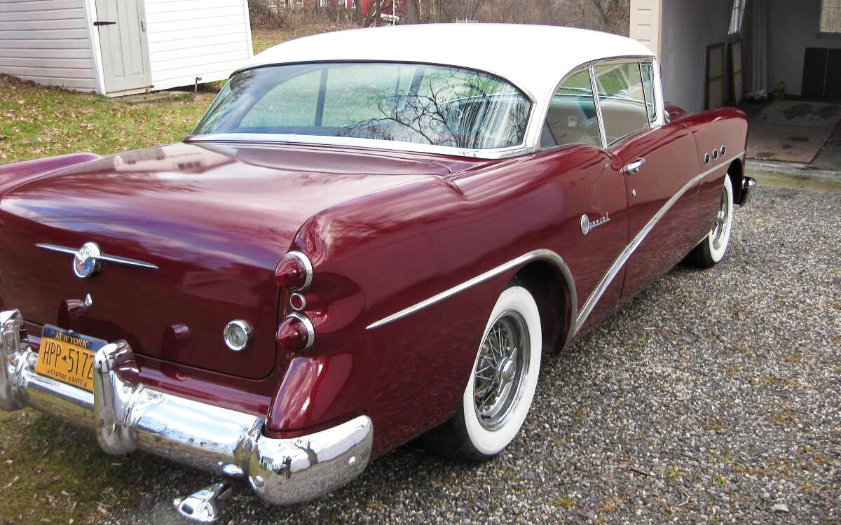 The Buick Specials of 1949-57 were signified by their three Ventiports on the front fenders (more upscale models wore four). Out of more than 449,000 Buicks built in 1954, the Special Rivera coupe accounted for some 71,000 copies, including the seller’s nice machine. It appears finished in Arctic White over Titan Red, a recent repaint. The seller has owned the car for six years and has invested more than twice the asking price in the automobile during that time.
