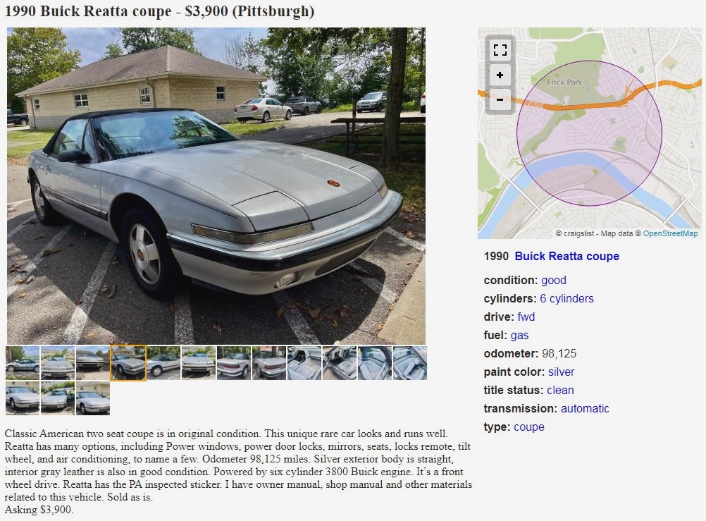 Correct that this is not a convertible, the Craigslist posting title correctly says coupe. And if the Reattas were actually built with rear wheel drive I believe they would have been a lot more popular.