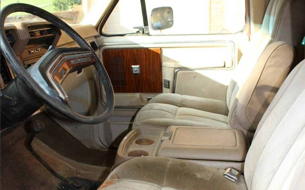 The Bronco itself has had a few patch panels installed in some lower extremities but overall looks fairly decent on the outside for its age, though the front bumper has tapped something and it’s wearing aftermarket wheels, but some good news is it’s a 4WD. The cab is all original and has some nice options such as cruise control, power windows, door locks, and a tilt steering column, features found as standard equipment on most vehicles as of late but not always there back in the early eighties.