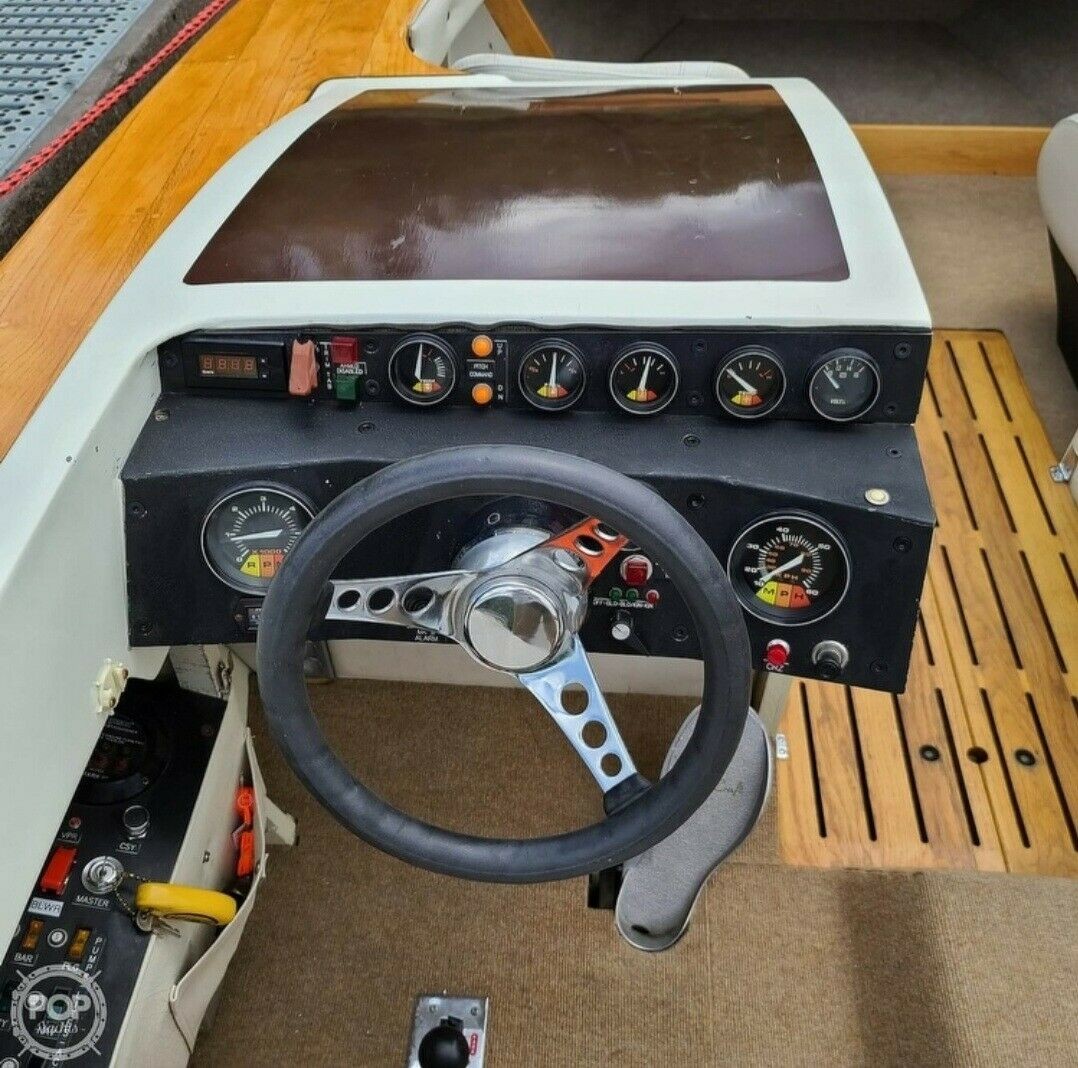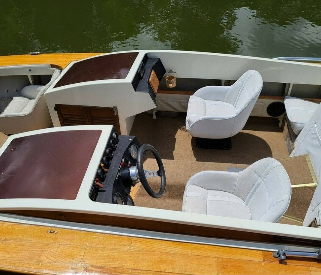 We can see in the pictures a very clean-looking hull and rigging, and while the engine compartment could use a tidying up, we bet this thing could really make a scene on any waterway. We see woodwork that suggests the current owner was right when he said that it has been garage-kept all of its life. That’s 21 feet of length and an 8-foot beam of pure watery wild-child!