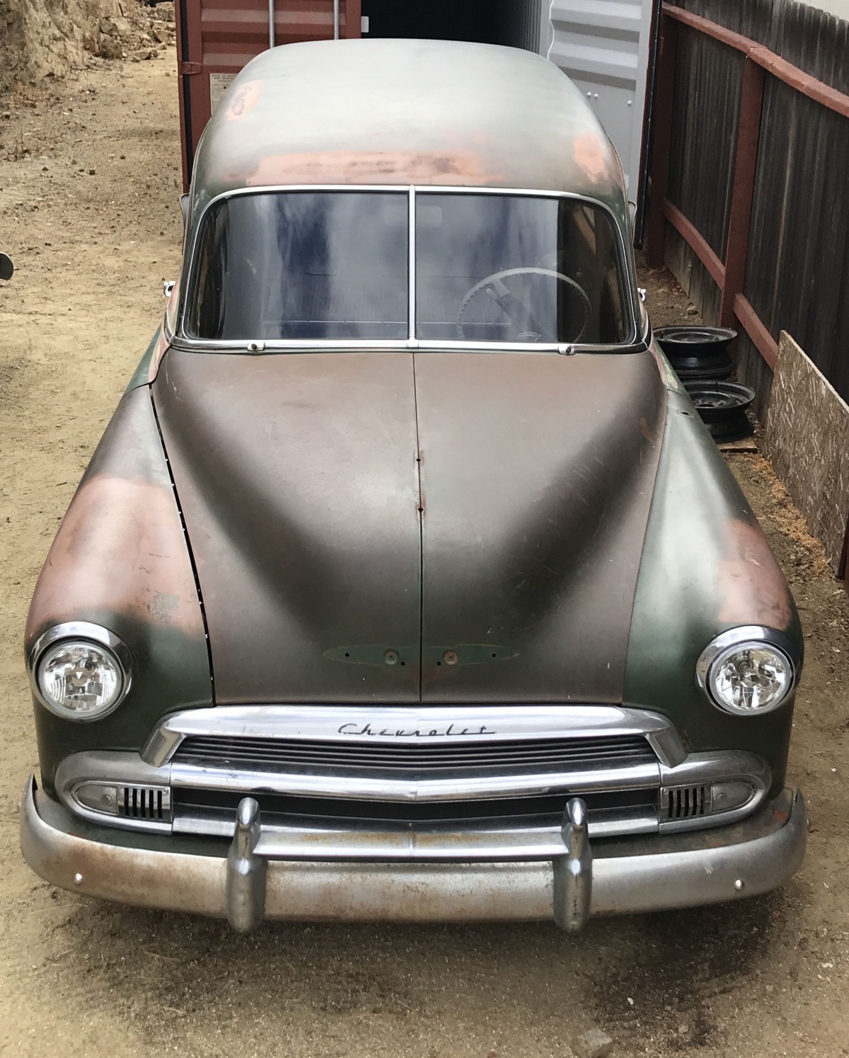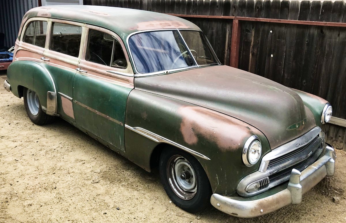 What Makes It Special? This 51 Chevrolet Deluxe was found in an airplane hanger. The hard work is done on this solid California Tin Woodie Wagon. It’s a bit of a Derelict style build. The body is straight and solid with loads of patina. That’s likely thanks to having been stored in a Santa Monica hanger. It’s now in sunny San Diego and it’s ALL Chevrolet! The original factory real wood interior with the original gauges restored by United Speedometer. The uncut original dash features its factory clock with new quartz movement & Custom Auto Sound AM/FM sound system. Dynamat installed from the top of the smoothed firewall throughout the rust-free floors of the seating area.