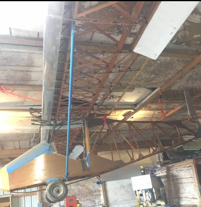 You can see how an airplane hanging from the ceiling would get in the way. I suspect the builder abandoned this project when he discovered it is too heavy. If that is the case it might make an interesting airplane to hang from the ceiling of a restaurant or museum. Do you think it’s possible that this airplane could weigh less than 254 pounds when completed? Do you think it could possibly be safe to fly, not knowing things like what type of glue was used? I cannot imagine this aircraft ever flying. Thanks, Clarke B, for a very interesting submission.