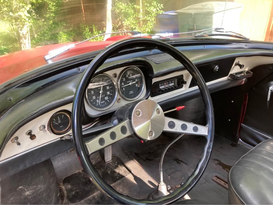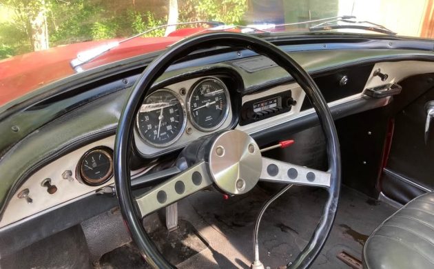 During production, the Caravelle was upgraded in important increments, particularly in the engine bay. The first cars utilized the Dauphine’s underpowered 845 cc engine, but by the time this example was made, displacement was up to 1108 ccs, and horsepower had increased to 55. All the engines were rear-mounted and water-cooled. The gearbox was another source of gradual evolution: from a partially-synchro’d three-speed to the all-synchro four-speed manual that came standard with the largest engine. Later cars also received improved suspension geometry and disc brakes. The seller notes that he has maintained and repaired the car using NOS parts, and it is said to run, drive, and stop “100%”.