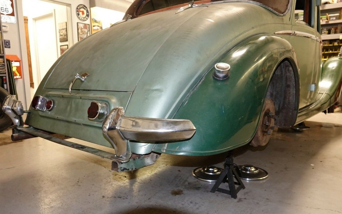 When I was young I saw what I think is this very car in a junk yard in Kansas City. There was nothing wrong with the car and it was the exact color of this one. Sitting besides it was a Aston Martin DB4 that somebody and hit a curb sideways and rolled a few times. but shockingly was still able to run and move. The body and glass well not so much. I was into MG’s, Triumphs, and Austin Healey 3000’s at the time but I came so close to buying it to restore and have next to my friends 1948 Bentley James Young Razor Edge in triple tone blue. The green would have looked amazing.