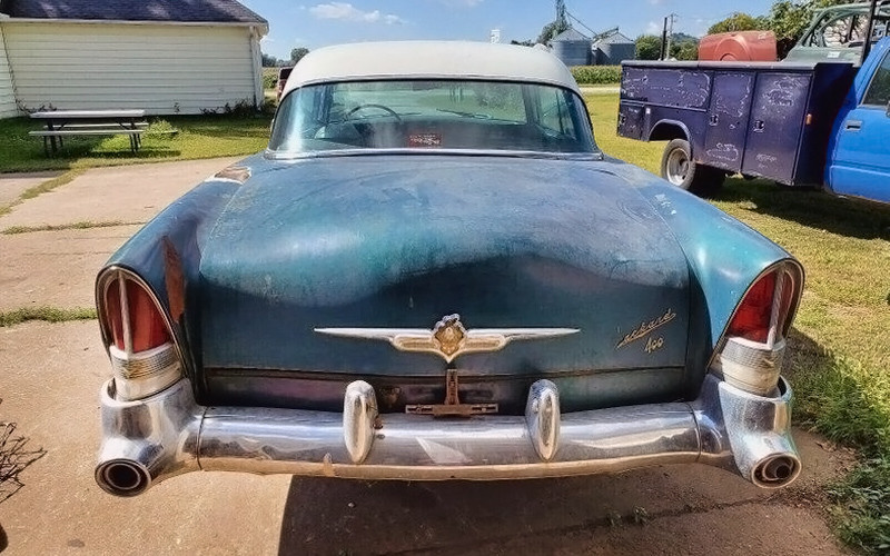 Packard previously used the 400 name as the highest trim level on the Patrician line but now, for 1955 and 1956, it was a standalone model. This car almost has it all, design-wise. The previously-mentioned proud front bumper is great, and those built-in exhaust ports in the rear bumper are even better than the front bumper is. The trunk is filled with stuff, hopefully all usable car-related items. They show the underside and it looks rusty, and I see something with a rust hole, is that the exhaust?