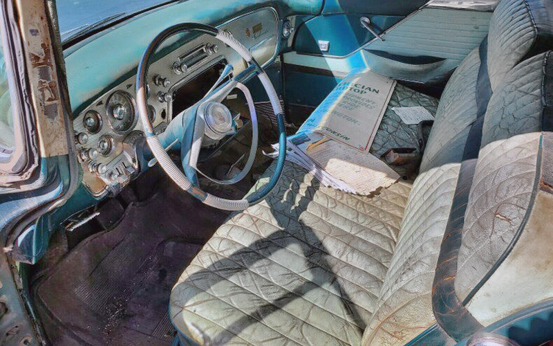 I never saw a three tone car. I wonder if the blue on the bottom was on the roof at one time. I love it because it is the color of my 57 Chevy that was my firsy car. A lot of work but love the leather interior. Not sure if it is a viable restoration financially since I don’t know what they are worth restored. Sure looks nice though..