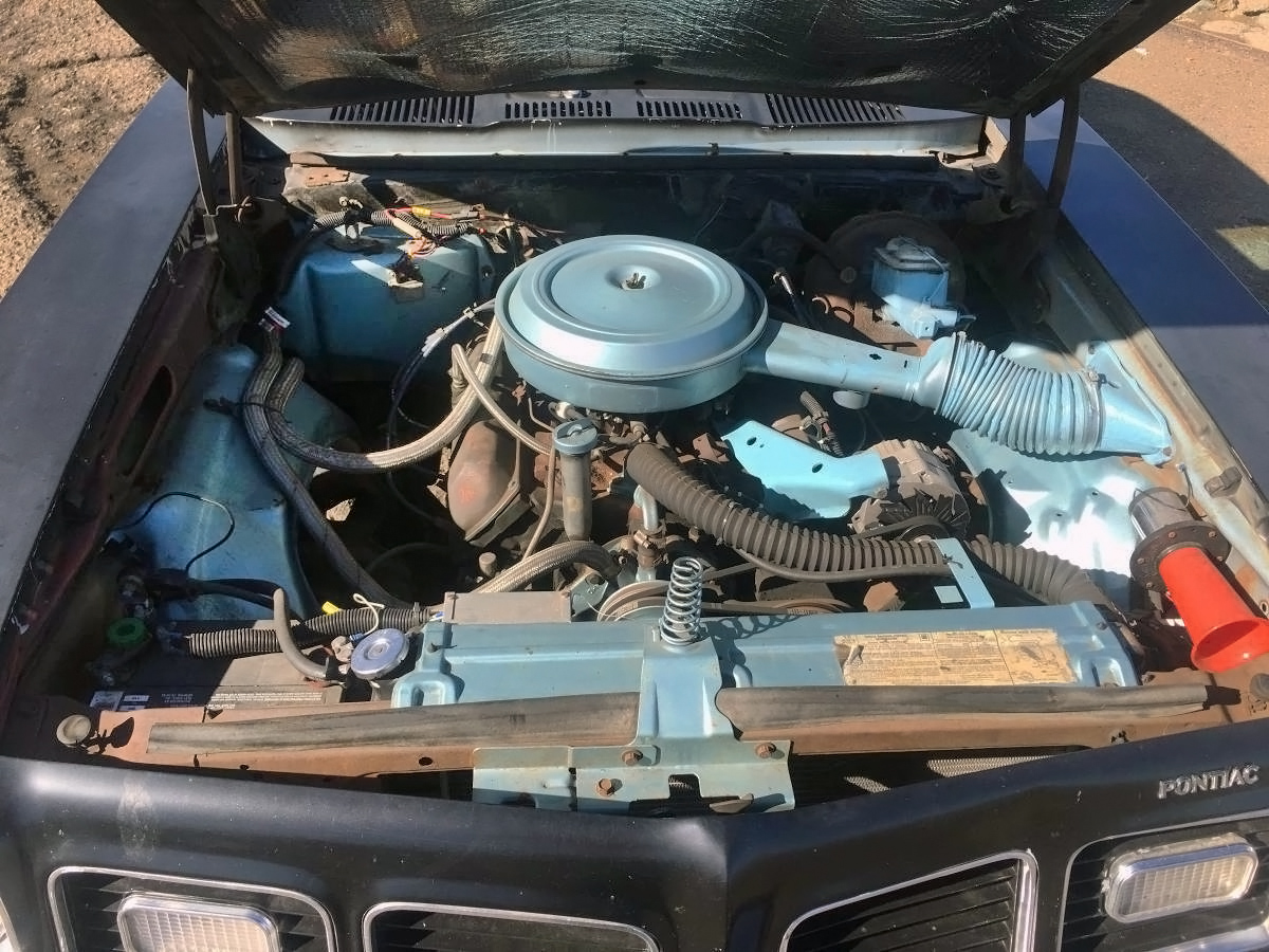 I’d be tempted to turn this into a 1975 one-of-none GTO with a 400 or 455. With proper Pontiac V8 motor mounts the 400/455 are a perfect fit in these cars.