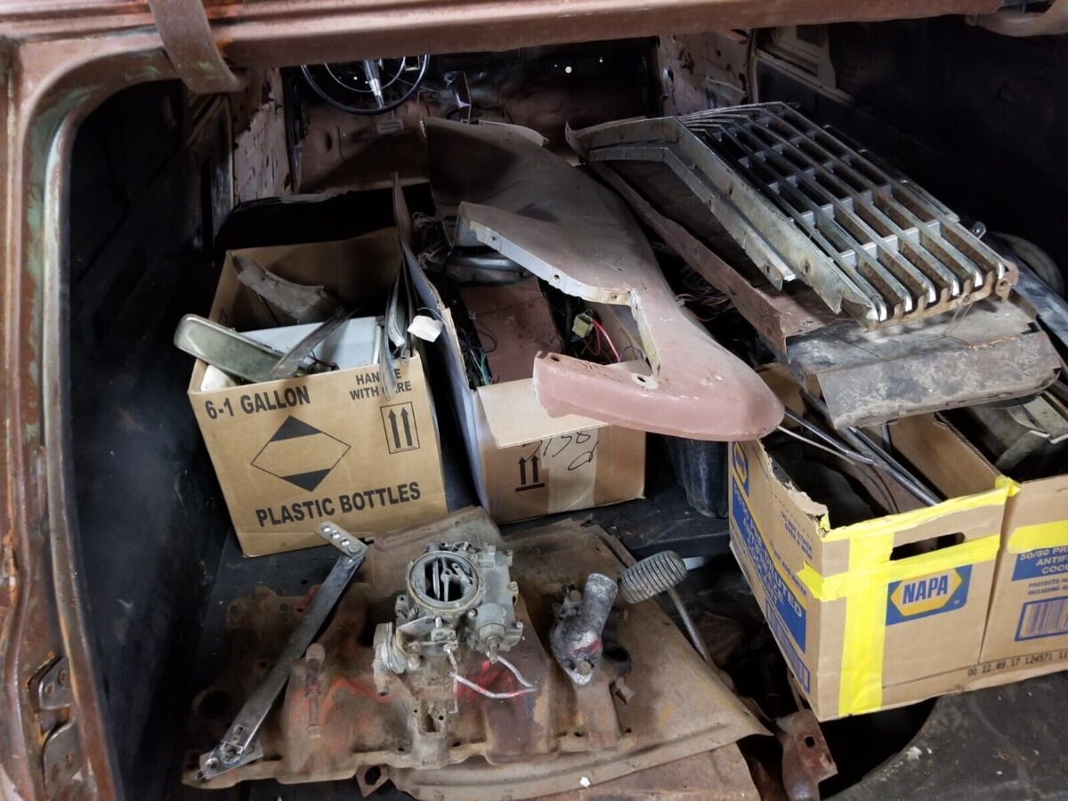 The car comes with loads of parts, but it’s also missing items. There’s no glass, for instance, except in the tailgate. Bumpers are missing as are the inner fender wells. None of this will be too difficult to come by, thanks to the sheer popularity of this model. The seller suggests the car would make a great gasser or cruiser. I can certainly see the possibilities here.