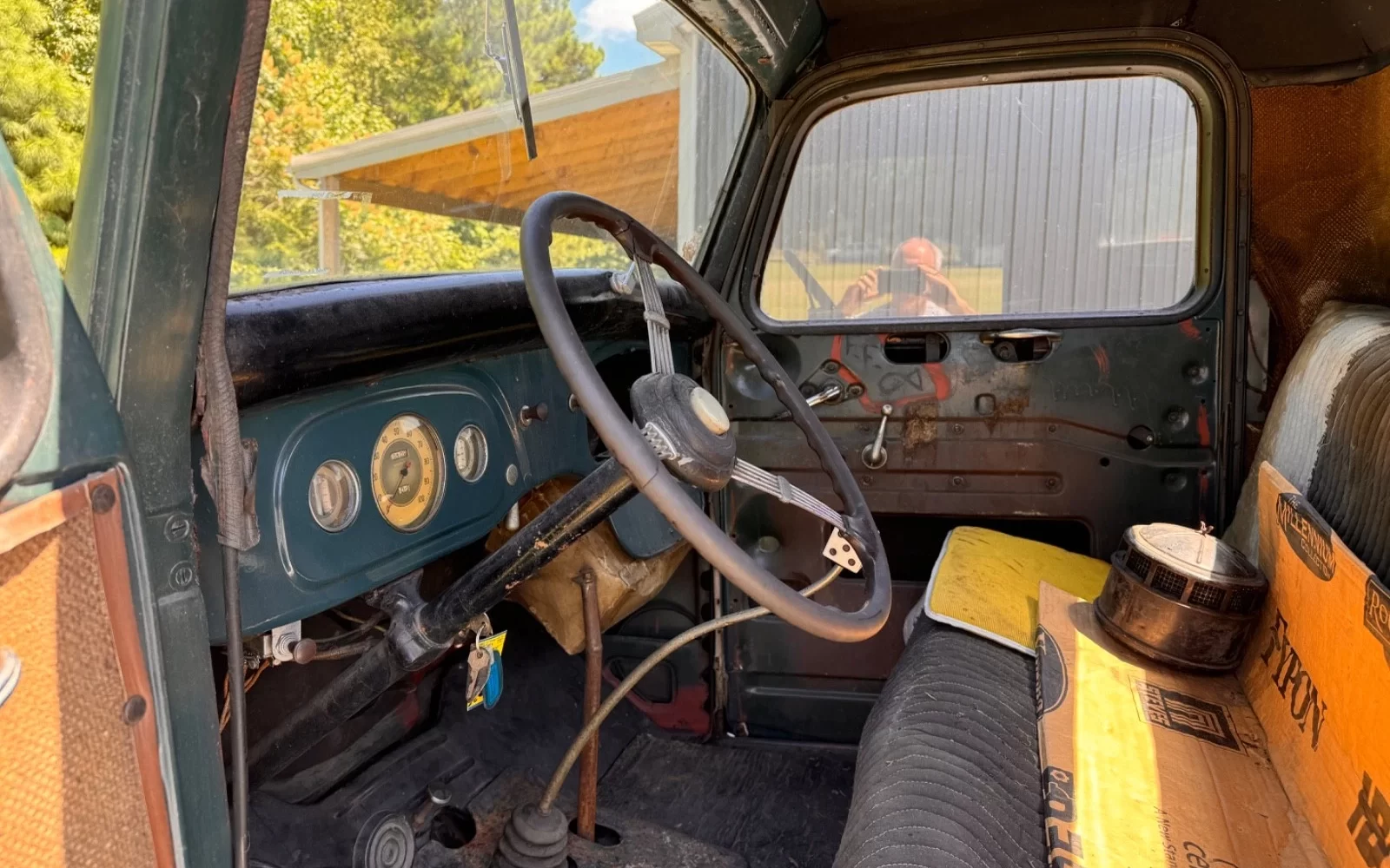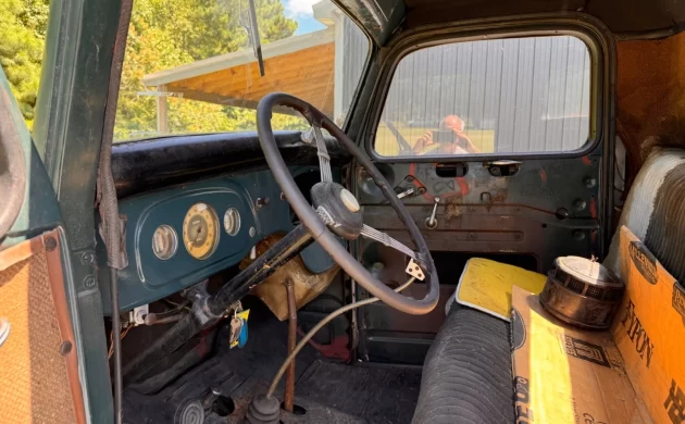 The interior needs some work, but luckily the Ford trucks (and all trucks) of this time period were about as simple a refurbishing job as an interior gets. It appears that the passenger door panel is missing (or is it sitting on the seat?), and the seat will need upholstery. I’d say that new door panels, upholstery, and maybe a rubber floor covering will have this truck looking spiffy in no time.