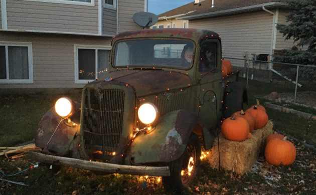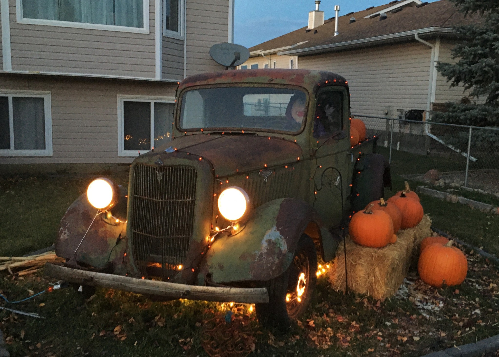 Wow! What I see here is a whole lot better than what I see at my place. Mine originated at a farm about 9 miles west of where I was raised. It was a typical farm truck and was used/abused in that way. Of course I’m not helping things out in any way because I’ve been causing some less than flattering views of it, all in the name of fall, harvest and hallowween. But it’s attracted a lot of attention (a lot of people have knocked on the door asking if it was for sale). I just send them on their way and go out and adjust some of the decorations.