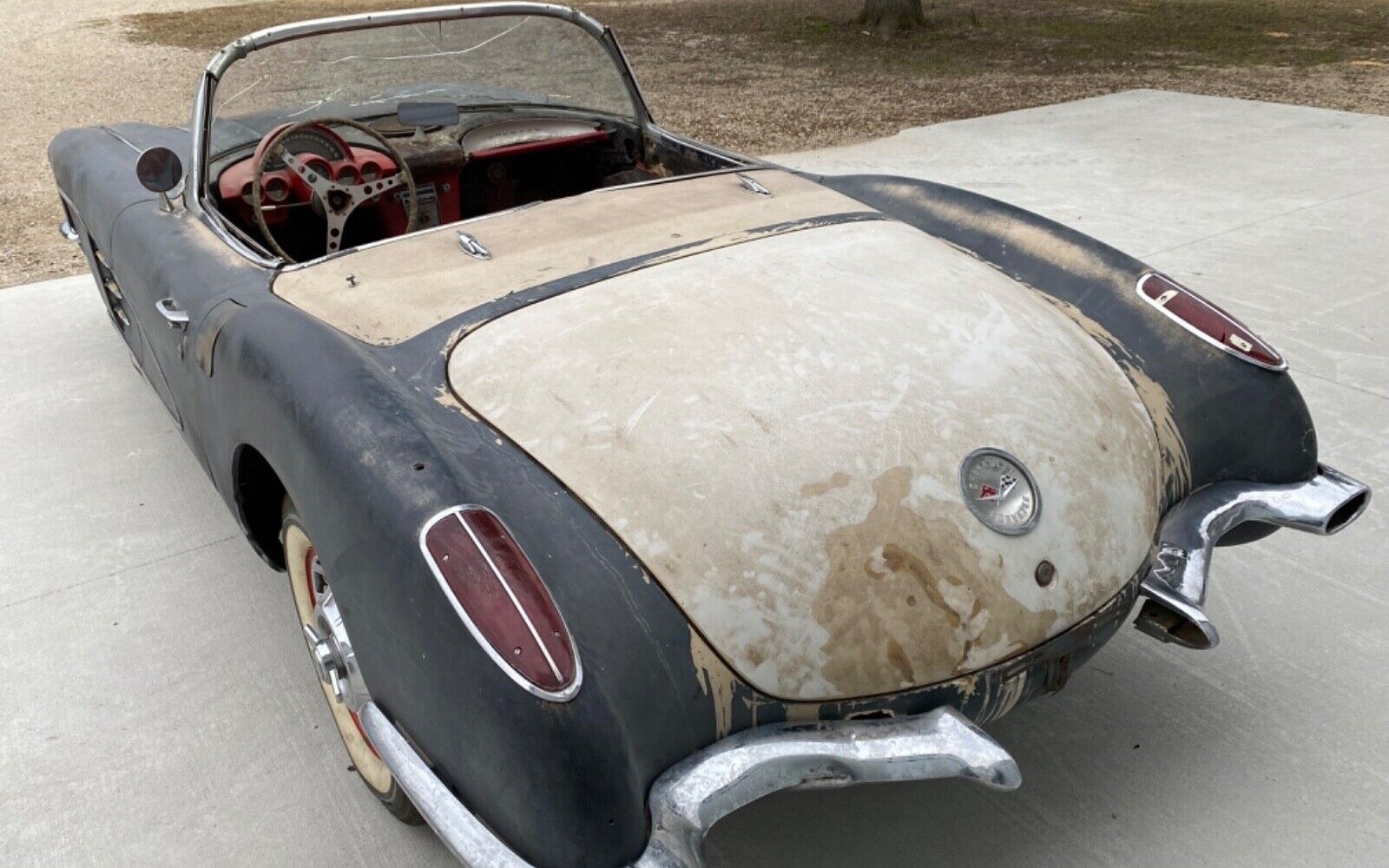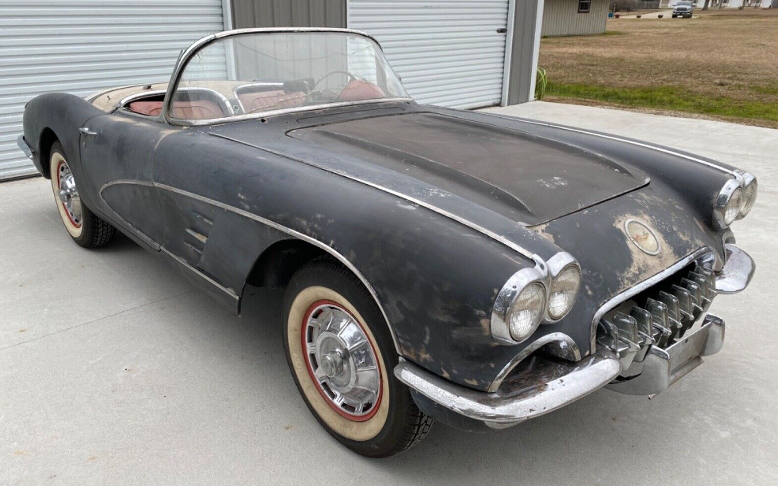 This one’s got a fun story behind it, as the seller tells us his Corvette had been napping for 30 years in a hay barn in Mississippi until recently and was originally a Louisiana car, to where it has now been returned. Black is also the factory color, even though a lot of the finish is either faded or in the case of the trunk, not that color at all, but the body is believed to have never been hit or damaged and is said to still have the bonding strips intact. I’m enjoying how the wide whitewalls make the outside appearance scream fifties, but being that the tires are likely decades old it’s time for a new set as soon as the new owner gets this one running.