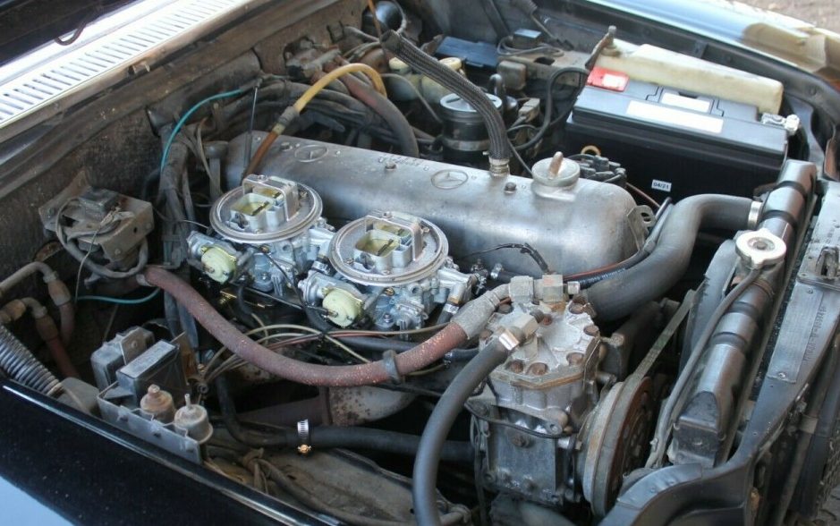 Power is provided by a 128 net HP, 2.5-liter in-line six-cylinder engine married to a four-speed automatic transmission. The seller adds, “We have driven the W114 enough to know that it runs and drives safely, with all electrics working properly, as are brakes and wipers. This W114 has been modified with power steering, which works perfectly, and the air conditioning (unknown, although the blower fan operates properly and compressor clutch does engage) is original to the car. True mileage is unknown, as it is a 5 digit odometer“. The original carburetors have been replaced with Webers but the rebuilt Zeniths are included in the sale.