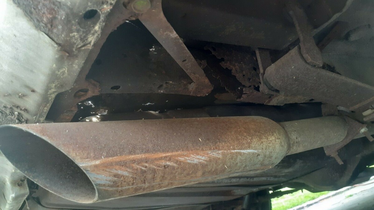Okay, brace yourself. This is where things begin to become expensive. The last foot of each rear frame rail is rusty, and you can see that it has progressed as far as the spring shackles. The frame rails in the front footwells are similar, while all of the floors and trunk pan have dissolved. I see much grinding and welding in the future for the buyer and also the opportunity to get on a first-name basis with the guy who supplies the replacement steel. The owner is aware of the work involved, and he is realistic that there will be people who will see this as nothing more than a donor car. With this in mind, he makes it clear that he has no interest in parting out this classic.