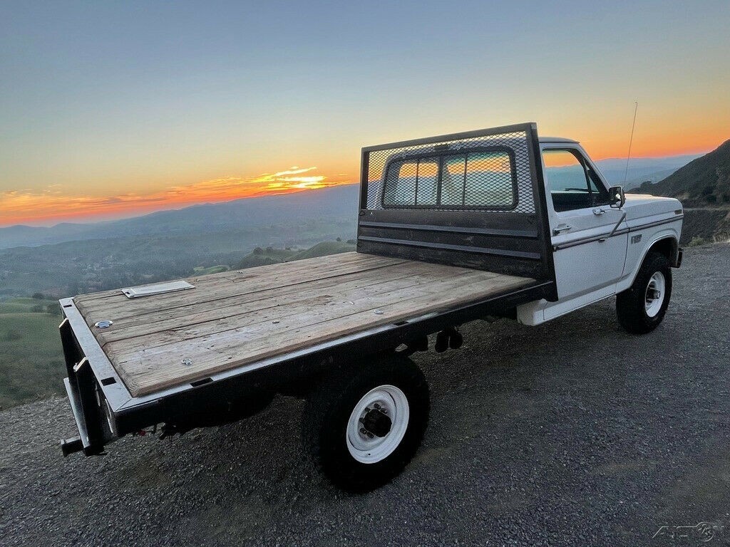 The good news is no matter which path you take you won’t have to restore the interior. This Ford is a conundrum for sure, as the home-brew bed would seem to suggest not much care was taken to preserve the cosmetics, but that’s simply not the case. The interior is in excellent condition with no signs of significant wear-and-tear, as the vinyl floormat is said to be in good shape and the bench seat reveals no major damage. The dashboard remains untracked and while the fake wood trim has seen better days, it’s at least all still in one piece. Crank windows keep life simple and the seller notes it has been retrofitted with a push-button start for security purposes and that the control lever for a previously-installed fertilizer gun is still present.