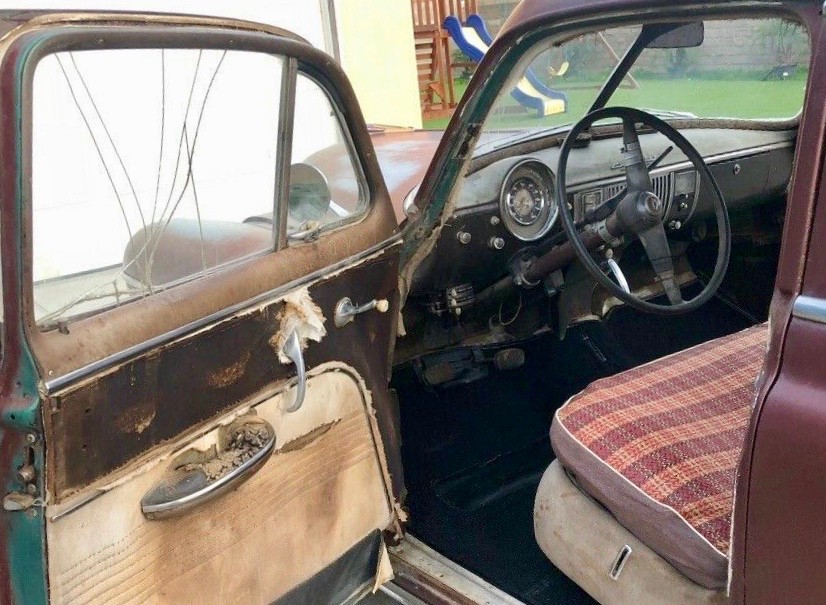 The rear is definitely a ’49 but the front is ’50. Going to be an involved project. First need to get an engine installed and go from there…