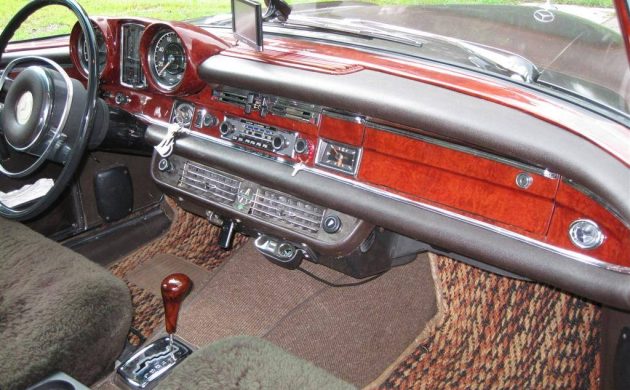 So, this Mercedes started life as a 280 SE, and as mentioned earlier, is a member of the W111 series that was offered between 1959 and 1971. Specifically, the coupe, such as our subject, saw eleven years of production (’61-’71) and mustered about 33K copies. What powered this coupe originally is not stated, though it would have been either a 2.8-liter in-line six or a 3.5-liter V8. Well, not anymore, as the seller tells us, “engine, transmission, front, rear axle, body floor came from a 1973 280sel 4.5 with 87k miles.” I’m not sure about the need for the floor transplant, but I’m hardly an expert on Mercedes architecture. Research indicates that the 280 SEL 4.5 started out as a North American model only, with a power output of about 195 net HP. Hellcat? Maybe Hellkitten, but I’m not even sure of that. So, how’s this Hepcat with its three-speed automatic transmission run and drive? No idea, nothing is said. I will, however, give this Mercedes points for its clean engine room.
