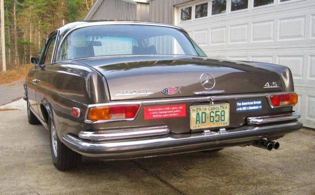 I had a 1971 W111 sedan 4.5 and it was a great engine. And very fast! This one has the 4.5 badge on the deck lid so don’t understand that. Don’t mind the later year Benz rims at all, but seller is asking crazy money for this Benz, IMO. I traded my 83 BMW 320i for mine back in 1990.