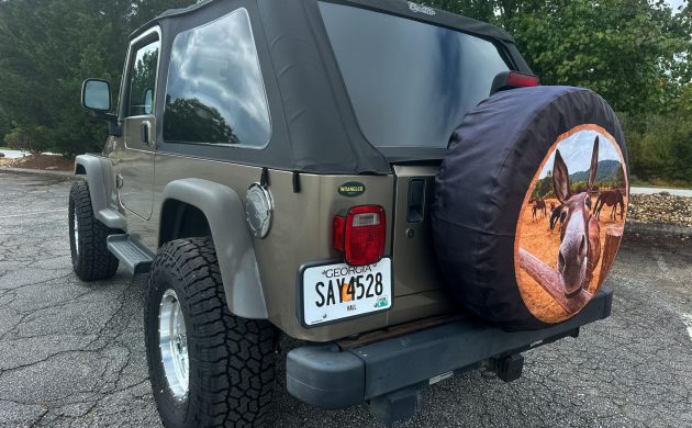 What? Oh, okay, I suppose, got to be known for something besides a loud mouth malcontent. You know, Jeep Wranglers, I’ve found, are probably the most personalized vehicles. No 2 seem to be alike. And all kinds. From the rough, faded, scraped and USED, like mine, to the highway queens, shown here. No stones in these tires, and that’s okay. My Jeep is certainly not conducive to any road travel, and not why I bought it. This Jeep is strictly for the highway, and never saw a flake or a 2 track trail. That’s okay, however( here it comes), I just don’t understand why someone in Georgia would need a 4×4 Jeep. Granted, they are fun to just drive, but so is a Corvair. Lot of extra hardware, not really needed. Whilst re-applying for my Medicaid, I have to list assets, and the state of Colorado seems to think my ’91 YJ is worth $5500 bucks( cough, sold) and while Toyota Highlanders may come and rust, a Jeep will always be a Jeep. New owner shan’t be disappointed with this one.