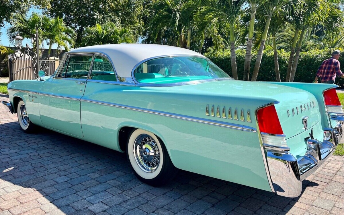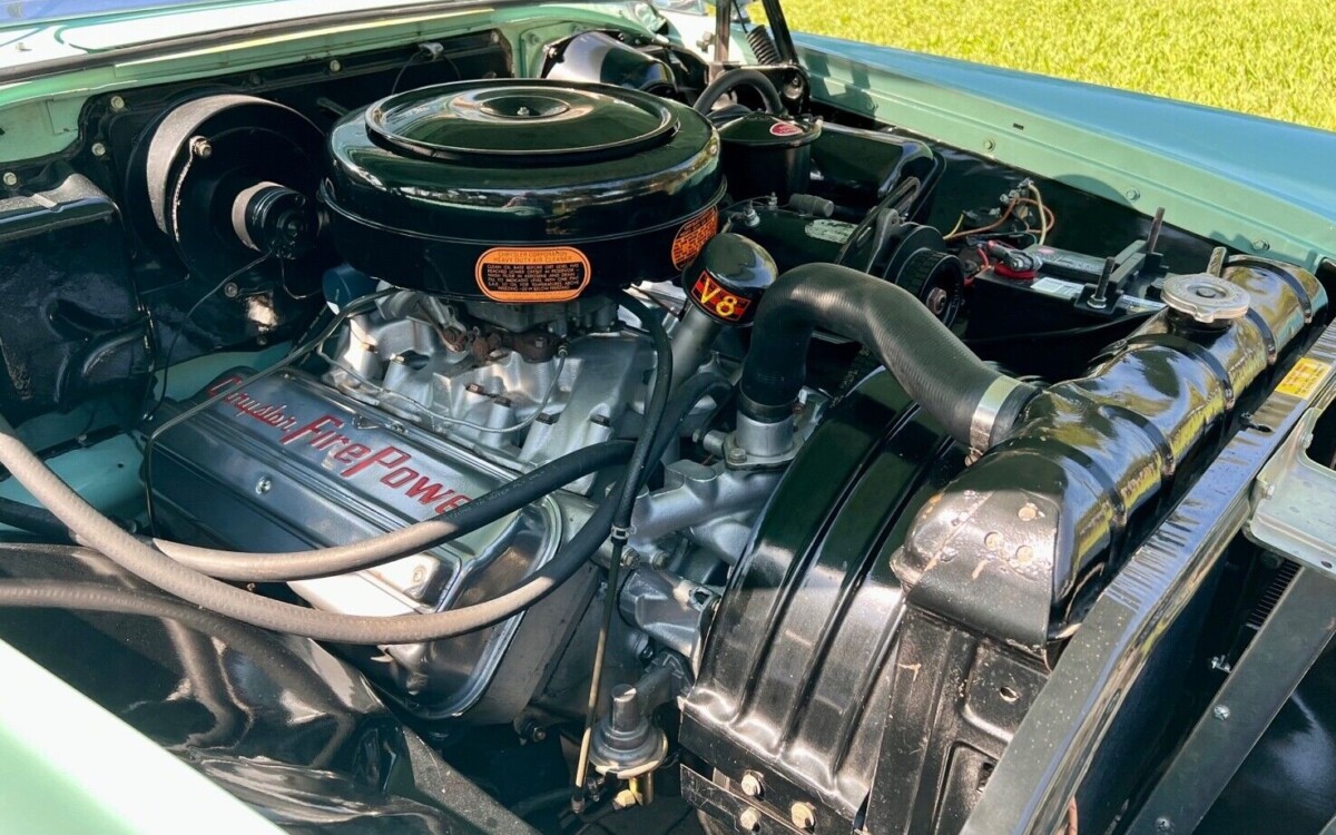 The stock engines in these were 354 cubic inches; It could perhaps be a 364 if rebored, but I suspect misinformation. This has the 2 speed Poweflite automatic, rather than the excellent 3 speed Torqueflite offered later in 1956.