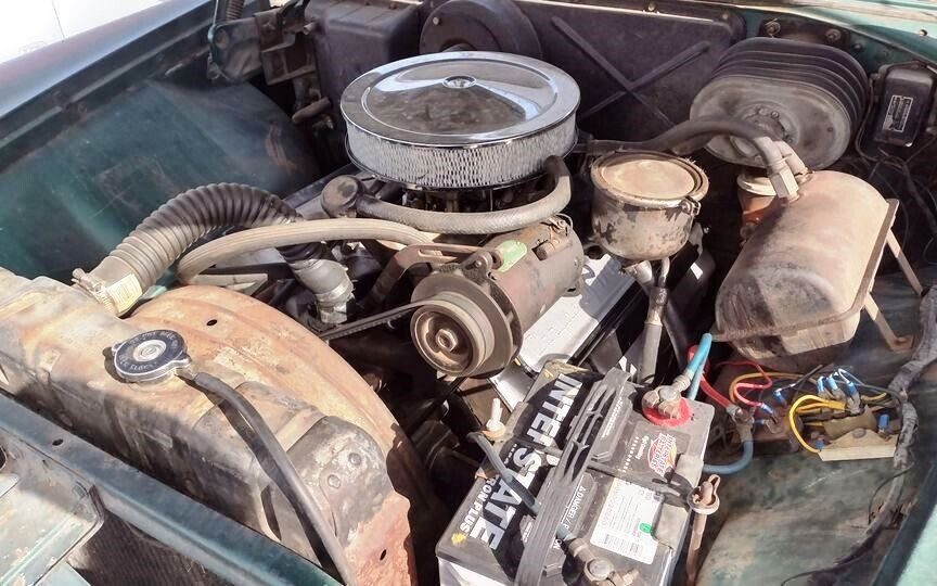 Yeah; it’s got a Hemi in it. If original, the 354 cid first-generation Chrysler V8 with hemispherical combustion chambers made 225 HP in this Windsor model, according to Lov2xlr8, while the New Yorker Town and Country managed 280 HP from a half-point bump in compression and other changes. Have you ever seen a blue battery cable?