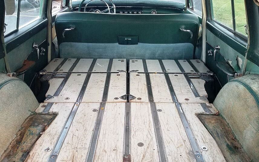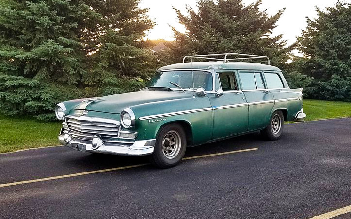 The car was bough like you see it. it was a good old driver car and put lots of miles on it .welded tabs on spoke rims and added he original caps. Have 3 other nice Chrysler wagons 1 55 and 2 56.Some times its neater in beater.