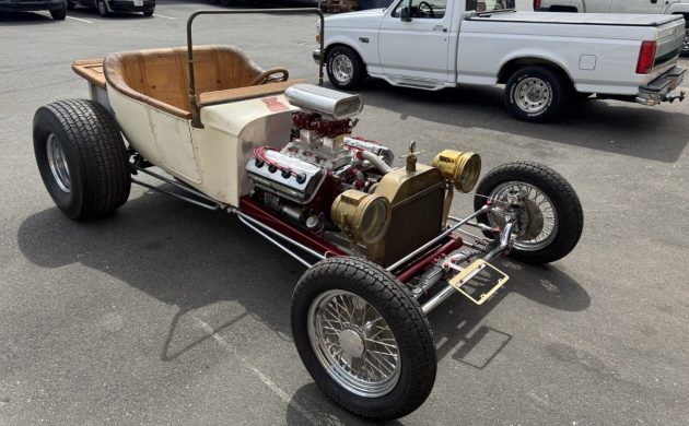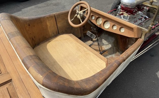 There’s a lot to unpack with this T-Bucket, which the seller believes was created in the early 1980s. It appears to have seen little active service before spending approximately forty-five years in storage. Time hasn’t been kind to its paint, which shows significant deterioration. The body probably needs stripping to bare metal, because even the visible undercoat doesn’t look flash. The frame is significantly better, with its Candy Red free from major problems. There is a range of nice old-school touches on this Ford, including the iconic Cragar wire wheels and the brass radiator and headlamps. One aspect of this classic with the potential to be a highlight is the timber. The photos indicate that it may have been the work of a craftsman, and a sand and a fresh coat of urethane might be all it needs to genuinely “pop.”