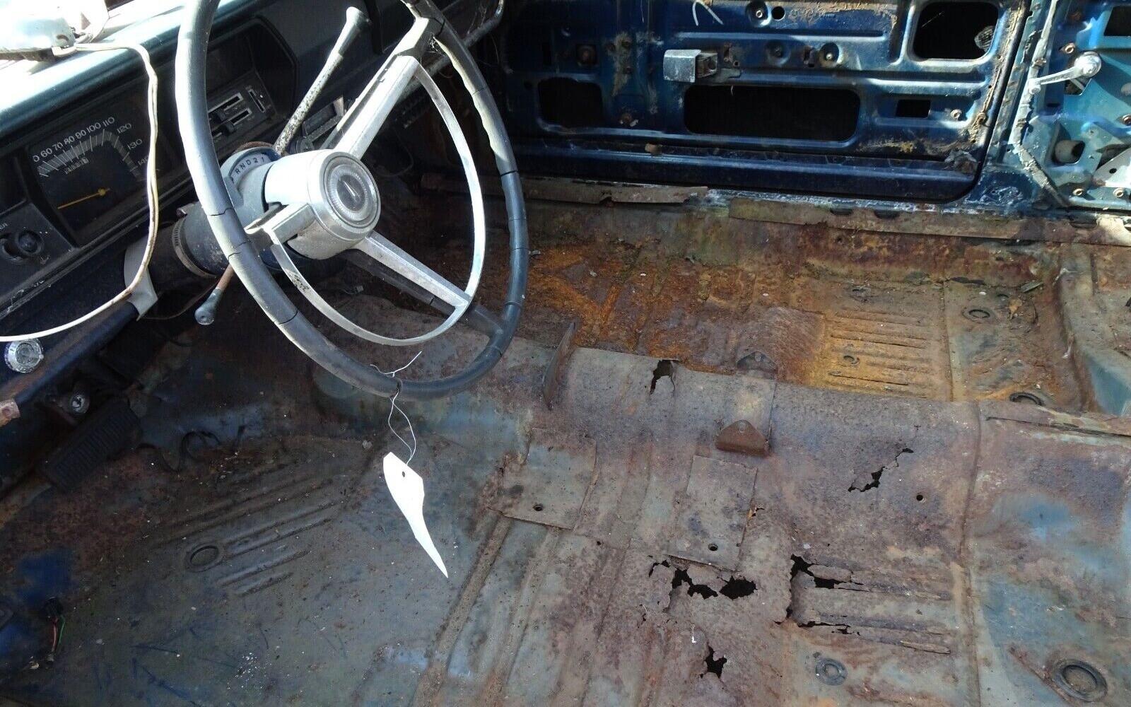 Inside, the seats and panels have been removed but it looks like most of the dash has been left intact. A new seat kit and door trim will be included, but you’re on your own addressing the floor and trunk pan. What would you do here, finish this one yourself, or let the folks at Mopar Revival continue once it’s yours?
