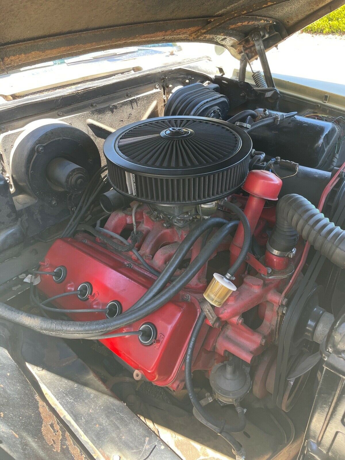 Dad’s personal car was a 59 Desoto with a 318 ci, so that Plymouth definitely had a Hemi in it, judging by the larger heads and centrally mounted spark plugs.