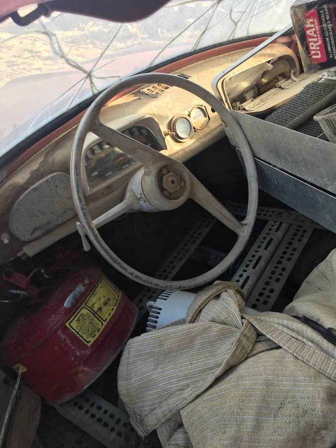 Regarding the seller’s car, the complete original electric set-up for the car is still there, but we must wonder how and where you would find any parts that no longer work? There are trays in place for the batteries, but none exist. The body doesn’t look bad considering the passage of time and appears to be wearing red primer. The interior will need a lot of attention, as well.